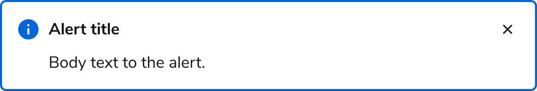The Alert allows for any type of content inside below the title and icon. This is typically represented as text and 0–2 actions (as Secondary Buttons).Close