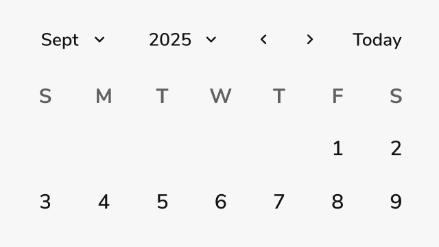 - Display dates in a familiar calendar grid format